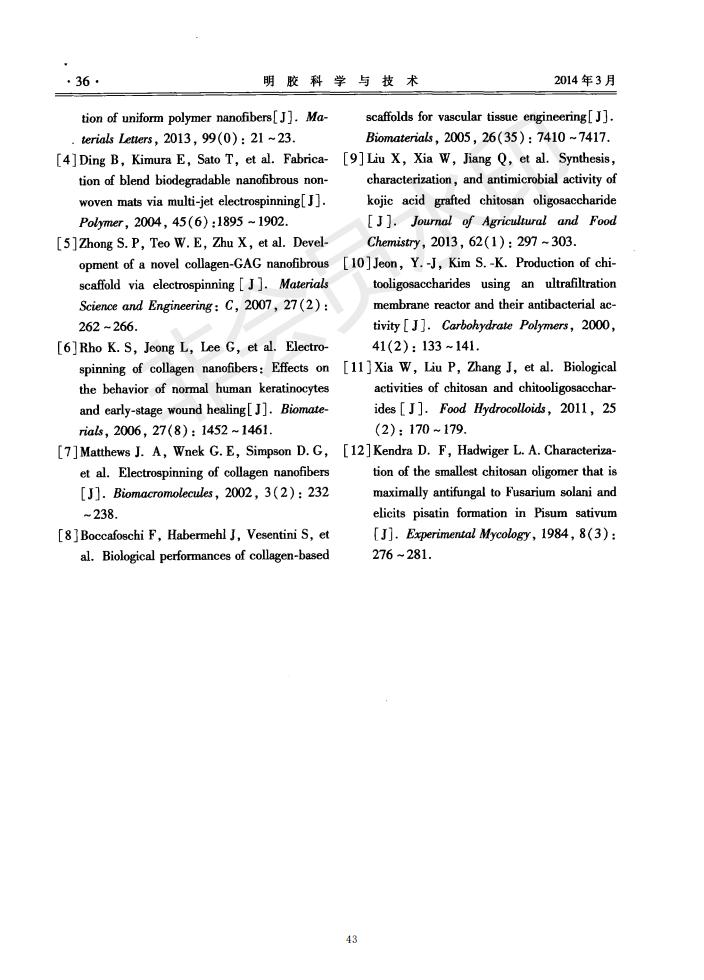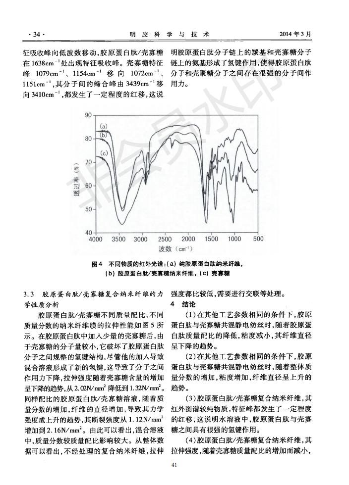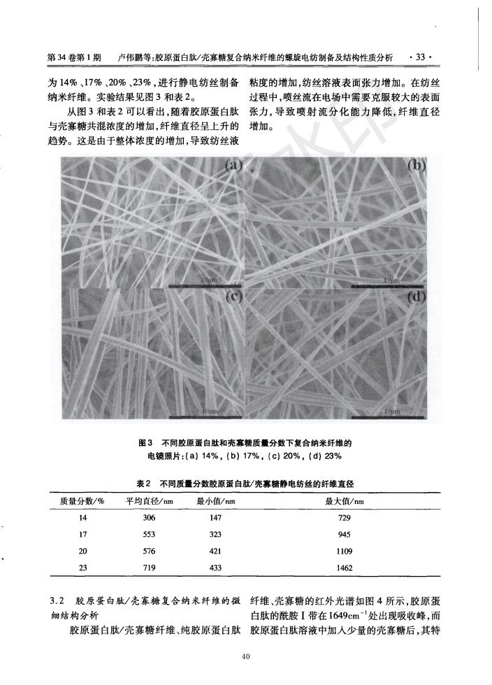 Spiral electrospinning preparation of collagen peptide/oligochitosan composite nanofibers and analys