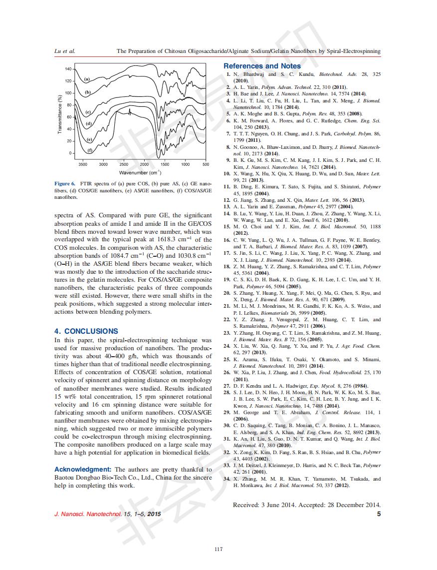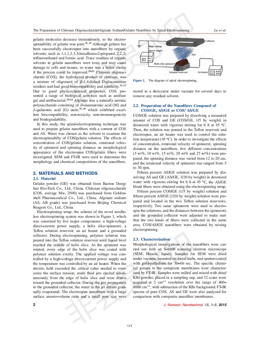 Preparation of chitosan oligosaccharide / sodium alginate / gelatin nanofibers based on spiral elect