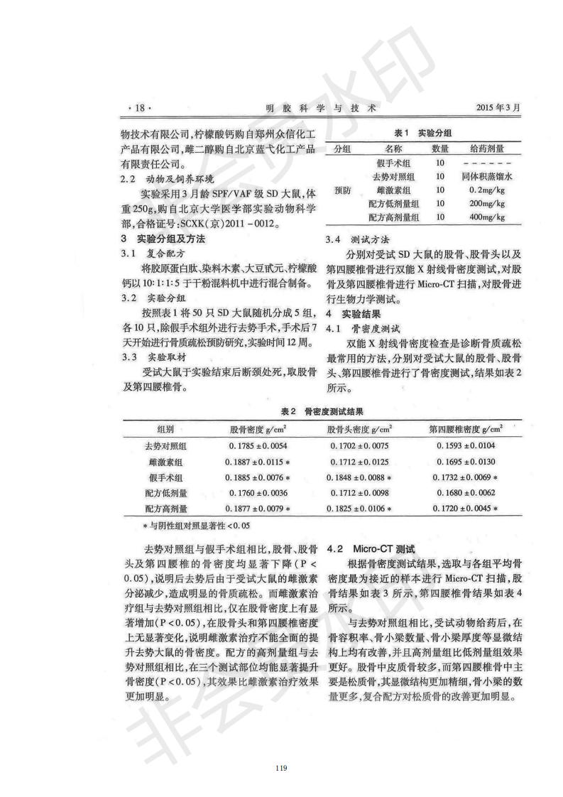Study on the prevention and treatment of collagen peptide compound formula on osteoporosis in ovarie