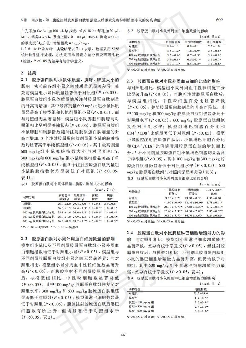 腹腔注射膠原蛋白肽增強糖皮質(zhì)激素免疫抑制模型小鼠的免疫功能