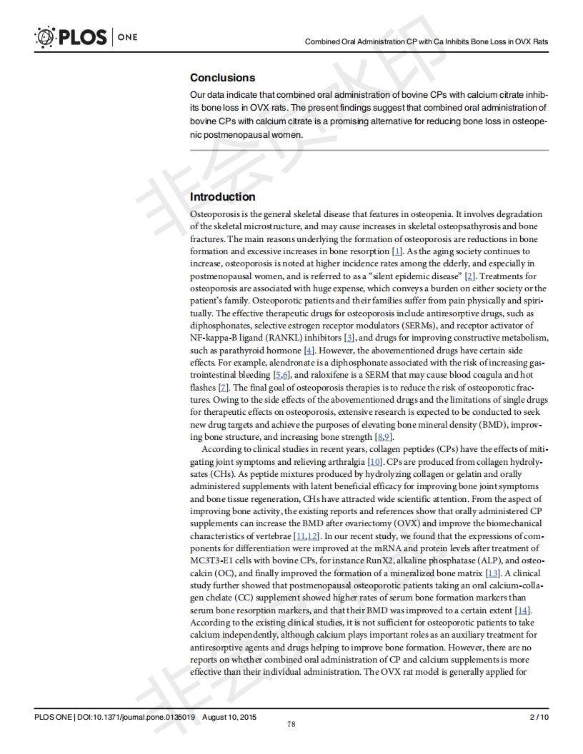 口服骨膠原肽于檸檬酸鈣抑制去卵巢大鼠骨丟失