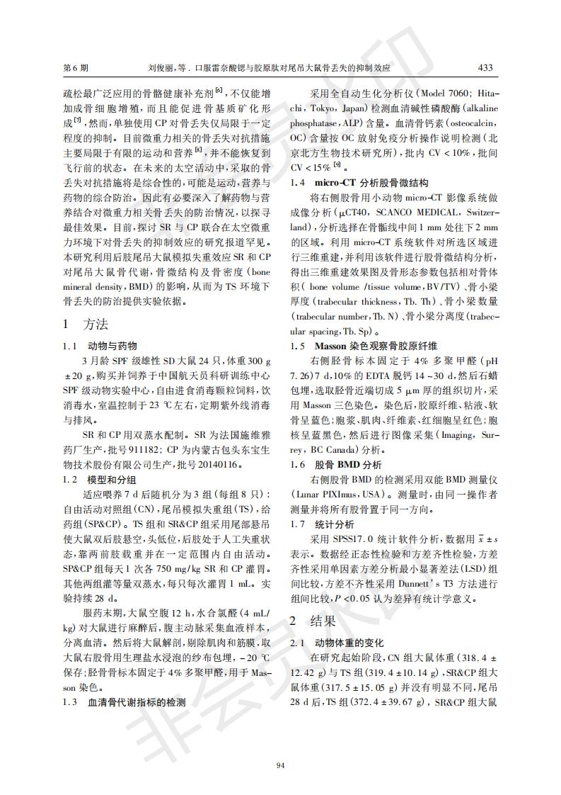 口服雷奈酸鍶與膠原肽對尾吊大鼠骨丟失的抑制效應(yīng)