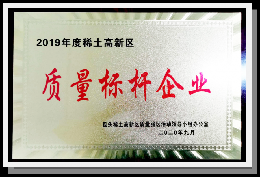 9月15日,包頭市稀土高新區(qū)2020年質(zhì)量大會在稀土大廈召開。會上包頭市稀土高新區(qū)質(zhì)量強區(qū)活動領(lǐng)導(dǎo)小組對2019年全區(qū)質(zhì)量工作先進單位、質(zhì)量標桿企業(yè)和先進個人予以表彰。東寶生物獲得“2019年度 質(zhì)量標桿企業(yè)”榮譽稱號。