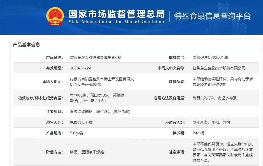 作為深耕膠原60余年的東寶生物推出的膠原+系列產(chǎn)品“倍優(yōu)免牌骨膠原蛋白維生素C粉”(注冊(cè)批準(zhǔn)證號(hào):國(guó)食健注G20250138),正是在這樣的市場(chǎng)背景下孕育而生。本品具有“有助于增強(qiáng)免疫力”的保健功能,可作為亞健康人群、中老年人日常營(yíng)養(yǎng)補(bǔ)充的選擇,也有助于滿足關(guān)注健康管理的青年及職場(chǎng)人士對(duì)提升狀態(tài)的需求。